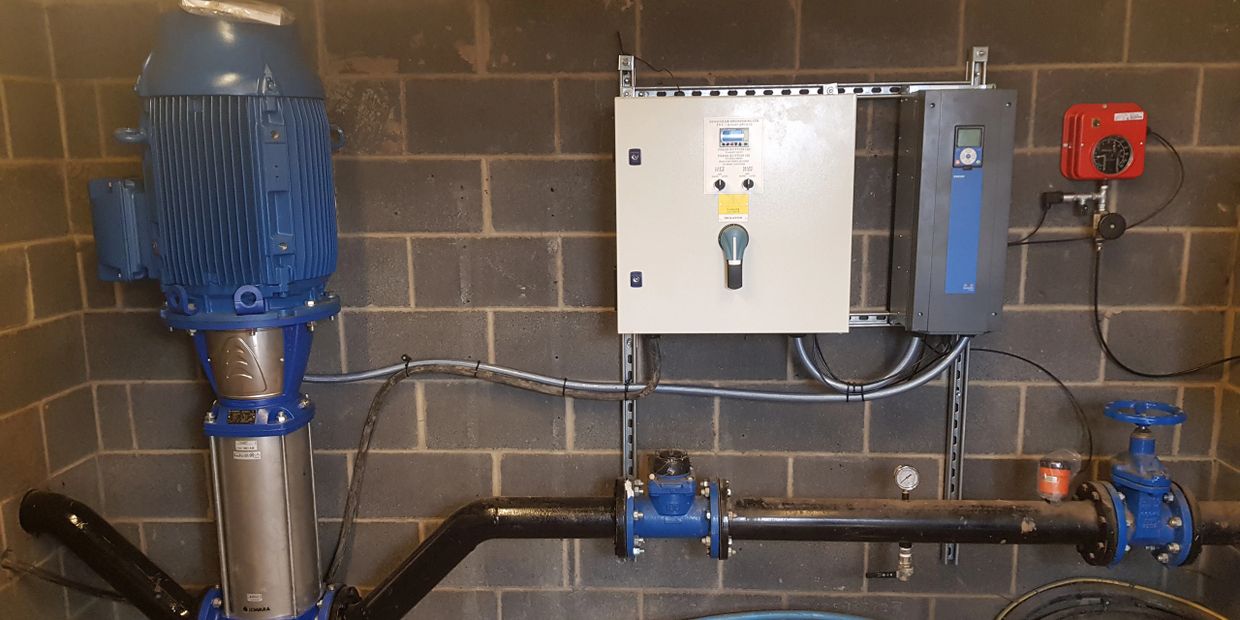 Any make or size of pump including borehole, vertical and centrifugal, our Control Systems are built to your specification and requirements, Using variable speed drives to maintain line pressure, with high/low and flow protection, mobile phone control and fault logging.